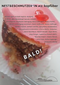 Mit Beiträgen von Ruth Aspöck, Apollonia T. Bitzan, Mike Blumentopf, hannah k bründl, Nina Buchner, Stephanie Castonguay, Alicia Edelscheiß, Paulus Fischer, Noomi & Wolfgang Helmhart, David Hoffmann, Momo Höflinger, Barbara Huterer, Gerhard Jaschke, jopa jotakin, kanaldenkbar, Kreppband & KANIVEAU, Chora Malik, melamar, Astrid Nischkauer, Martina Nowak, Dejan Petric, Jörg Piringer, Katharina Prazuch (KDP), Alice Reichmann, Simona Reisch, Irma Tulek, Stefan Voglsinger, Christopher Wittine